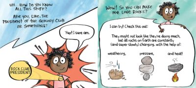 I was that kid who liked looking at rocks. Not geodes (though I had a few) or anything special, I just liked rocks. I figure it was the shapes, and colors (though I’m sure my family would say they matched the ones in my head). I have always been a visual person. When older I liked crystals (hey! It was the 90’s… for those who were there, you get it), but never got into the science of rocks. Not until I was much older was it that I realized how cool they really could be, and I’m Trying to Love Rocks by Bethany Barton is one of those reasons.