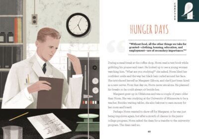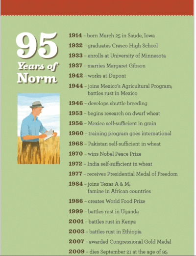 And with that said, I really can’t wait to learn more about this man who saw the troubles of farmers, learned contemporary ways of thinking about how to farm, how to deal with the diseases, over farming and other troubles the land would face all because fate would show him the Great Depression, war and the good people who just wanted to feed their families. And this is just halfway in! It’s packed with a non-fiction story of Norm’s life, plus varying sized side boxes that will give more information on the subject, or historical settings. A subject we take for granted, food and the growing of it, has a long history, and thanks to Norman Borlaug, it can still grow.