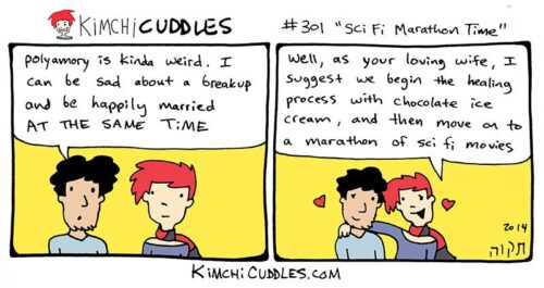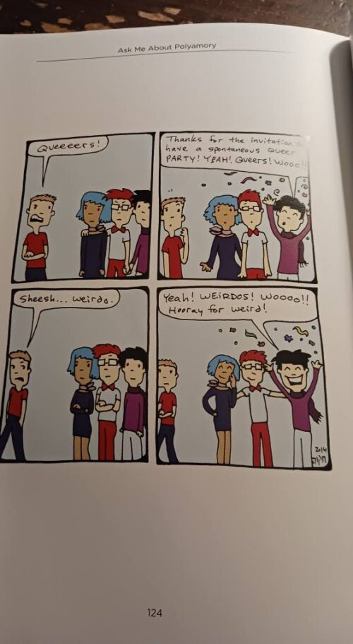 If one is curious about polyamory but wants something easier than a full on text, then this might be the one you need. You will take away from it what you put into it. My personal take was that some things helped me understand the subject, other things I felt made things even more confusing, sometimes I thought she was preaching to the converted, and some comics I felt were the “party line” answer that made things seem to be just BS. Or in other words, I thought, I explored, I had questions, I had answers, I had more questions and I came away with something I didn’t have before.